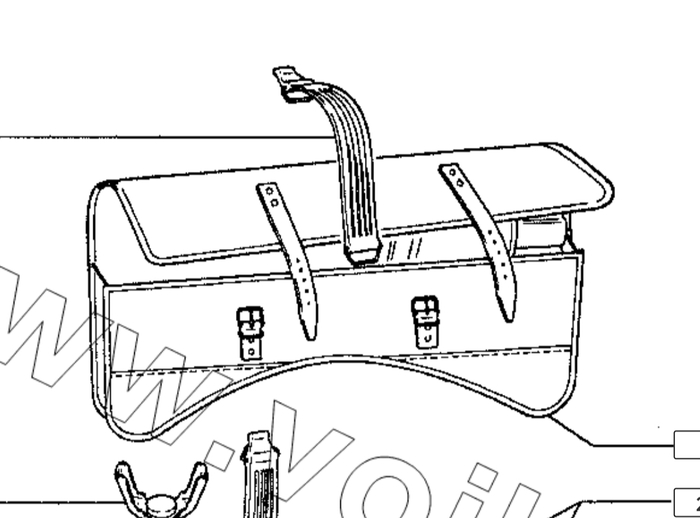 Эта сумка располагалась в подкапотном пространстве над правым передним колесом.