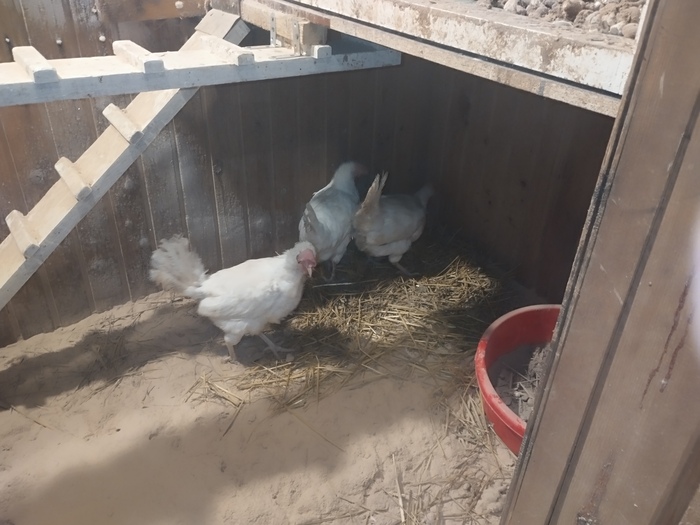 Пока занимался наведением чистоты курочки спрятались, для них это стресс.