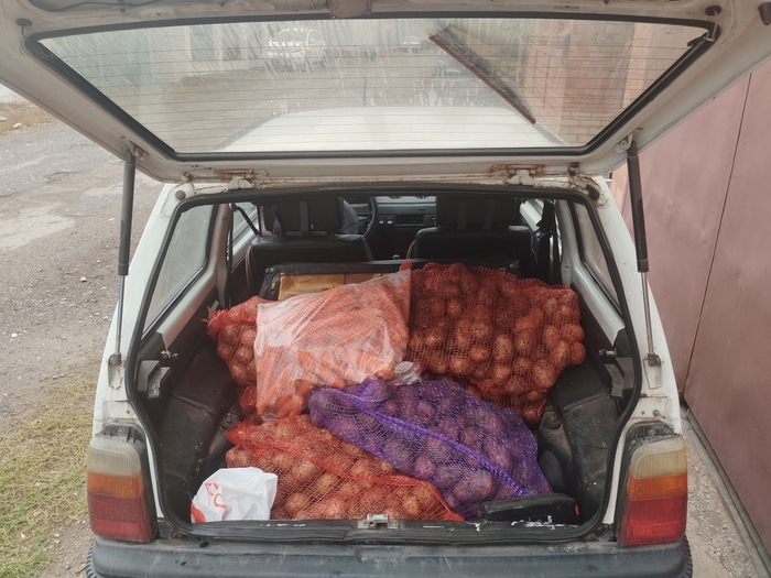 Сегодня ездил в деревню покупать картошку. Загрузил 140 кг, 6 мешков картошки. Окушка выдержала эту нагрузку, привезла спокойно и уверенно.