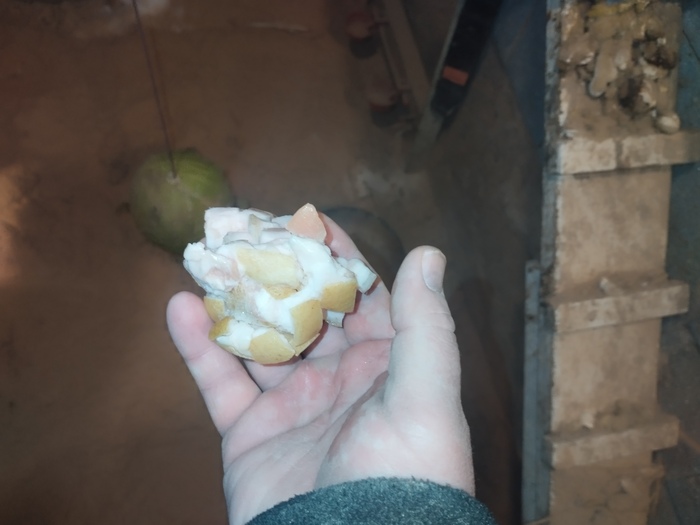 Сегодня прихожу в курятник, под ногами валяется два замёрзших яйца, как будто у какой то курочки они неожиданно вывалились.