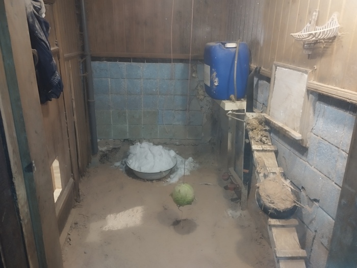 Полы в курятнике засыпаны мелкими опилками, раньше помёт в них впитывался и его не было видно. Сейчас в морозы замёрзшие куриные какашки некрасиво валяются на полу.