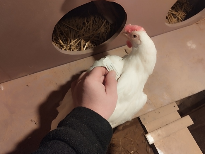 Птичка на ощупь горячая, намного теплее человека. Во время процедуры куры себя ведут спокойно, они знают того кто им сало приносит.