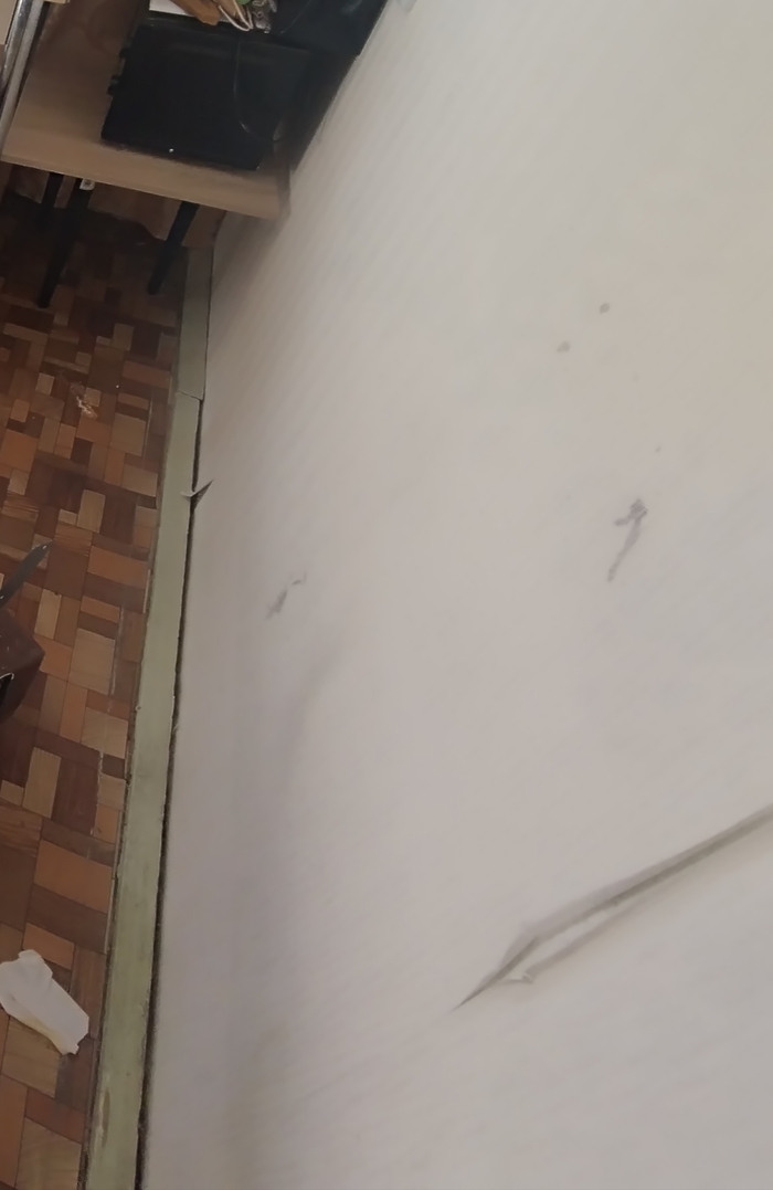 Когда диван отодвинули от стены, на стене стали видны пятна.