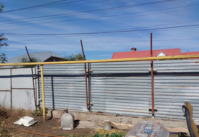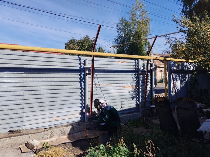 Для защиты кустов винограда от сварки и от сапога сварщика, использовал подручные материалы, старые баки, раковины, вёдра.