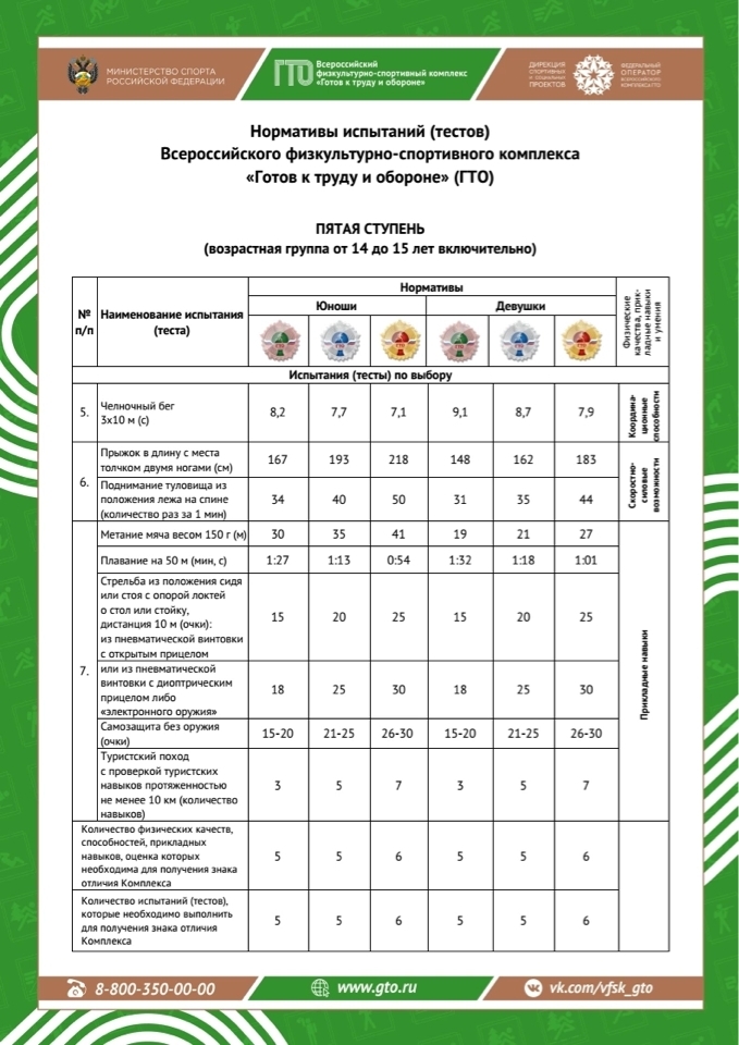 Остальную информацию можете найти самостоятельно по ссылке - официальный сайт ГТО https://www.gto.ru/