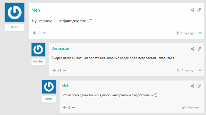Тогда экологи пришли в офис компании, которая занимается тестами 5G и стали там показывать менеджерам мешки мертвых скворцов. В ответ менеджеры привели какого-то клоуна с бородой и в очках, который стал загибать пальцы и рассказывать, что у 5G длина волны точно соответствует длине тела скворца. Поэтому скворцы вступают с передатчиками в резонанс и погибают. Для животных, чей размер больше длины волны, 5G угрозы не представляет.