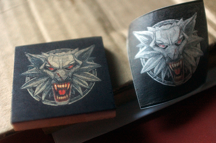 сверху на деревяшку кладем распечатанную картинку, мордой вниз:
