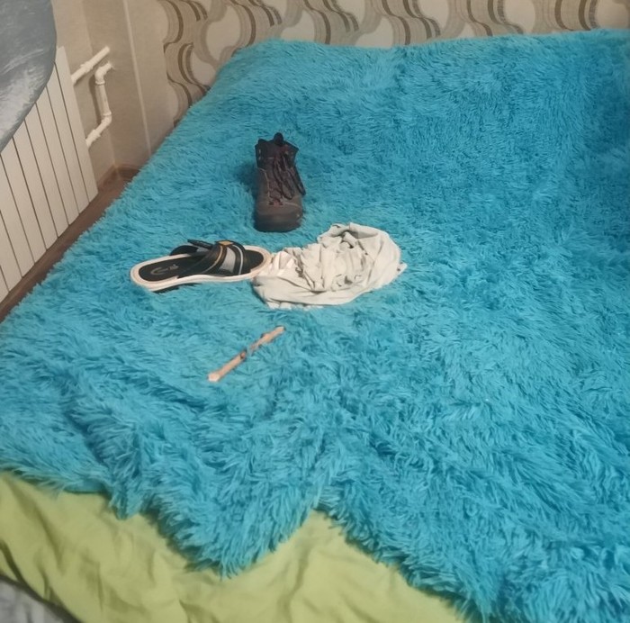 Любит таскать наши вещи и валяться на кровати, а вот прятать улики не умеет. Одна из моих любимых инсталляций