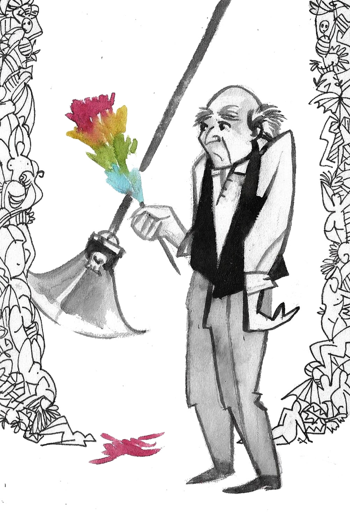 – Большая грудь всегда вызывает у зрителей смех, – ответил Блуз. Он снова обвел взглядом лица новобранцев. – Э… вы так не считаете? А в спектакле «Здравствуйте, я ваша шляпка» мне довелось сорвать аплодисменты в роли вдовы Буфер…»