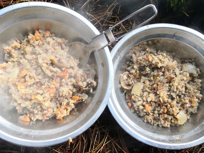 Глуп тот, кто считает, что не в этом счастье, в простых мелочах и добрых словах. Кстати, ни разу никто из нас не поругался друг с другом за поход. Всегда тёплые слова, безобидные шутки, понимание ситуаций. Сложно было только с Максимом, он не сильно разговорчивый и всю дорогу думалось, что он уже не рад этому походу и больше с нами не пойдёт, но нет, несмотря на все сложности ему очень понравилось и в следующем году, я очень надеюсь, мы этим же составом пойдём покорять новые места, уже более подготовленные и с новым вкусным меню.