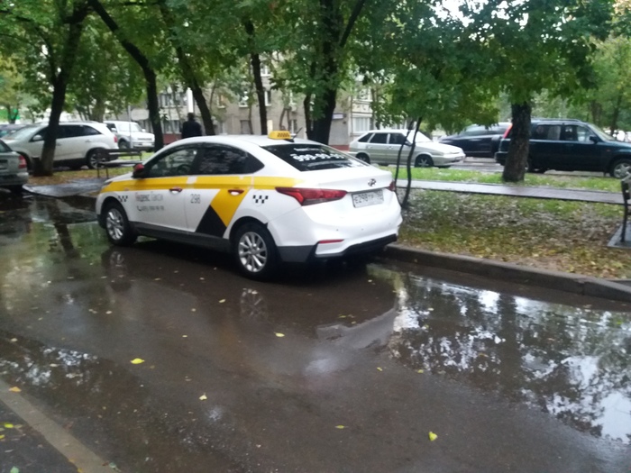 Выезжаю из двора. Пропускаю приближающийся слева яндекс.такси. И тут он просто останавливается и перекрывает выезд из двора. Клиентов они увидел! Объехать его невозможно. Он меня прекрасно видел, там ни деревьев, ни кустов. Пришлось подъехать к нему так близко, чтобы клиенты не смогли открыть дверь. Если бы я так не сделала, он бы: