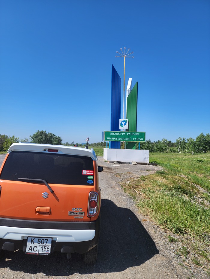 Ранним утром, еще до рассвета выдвигаюсь в путь. Как бы чувствуя новые проблемы, мне встречается остановка с лозунгом на оставшуюся дорогу. Следующая остановка Красноярск. Предстоит вторая замена масла, фильтров двигателя. Там конечно история вышла, что я заказал на один адрес, потом на другой, и все сроки хранения сгорели, из-за непредвиденных длительных остановок. Благо последнюю доставку удалось продлить. Теперь я двигаюсь с новым приводом, ступицей, и полноценными колесами после всех сходов-развалов/балансировок. Автомобиль уверено идет, что вызывает ликование, и напевание песен в пути...