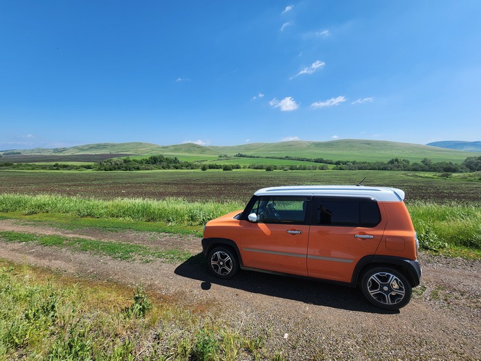По дороге заехал к другу в Тихорецк, с которым прокатились по городу, и он сев за руль, уже создал рекламный контент модели Suzuki Hustler.