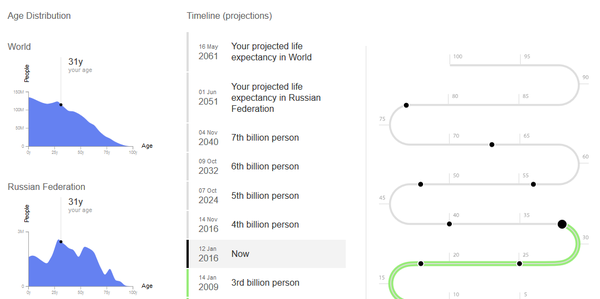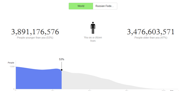 Интересный сайт с инфографикой о том, какое место в популяции занимает человек, исходя из даты рождения и пола.