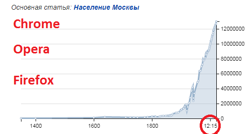 Решил я намедни уточнить в Википедии численность населения Москвы, а там на графике вместо года время показывает 12:15. Начал гуглить, оказывается это тайный знак, подробнее тут https://angelnumber.ru/znachenie-chisla-1215-v-angelskoy-num....