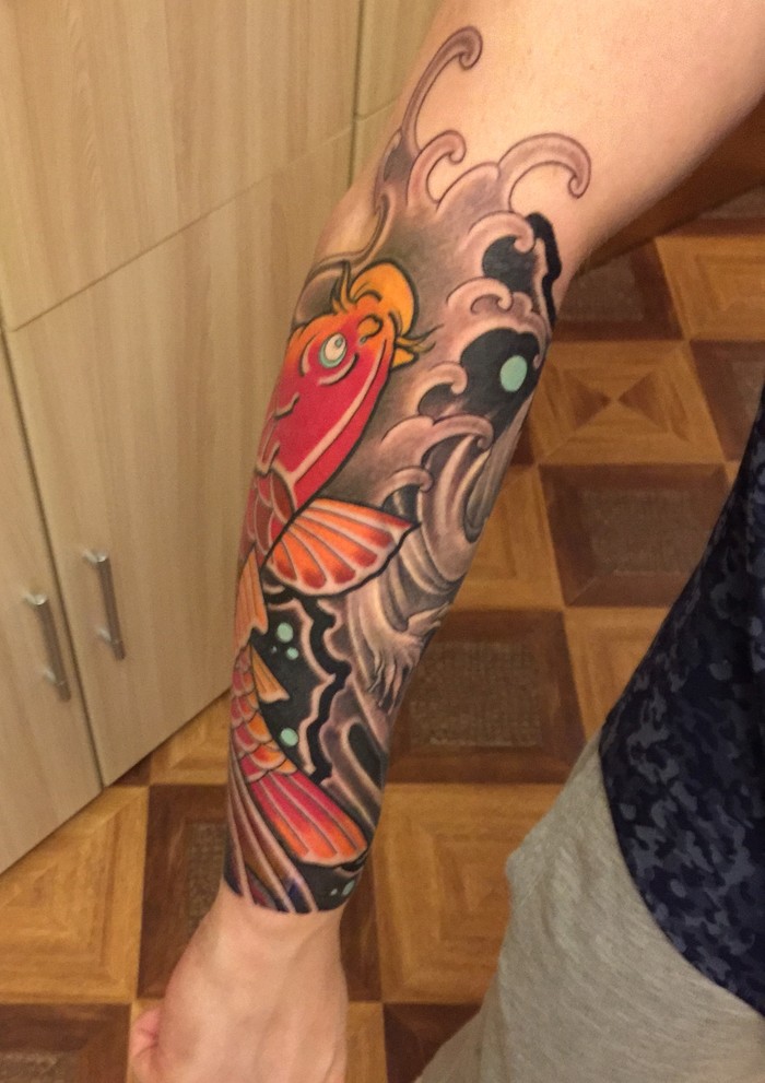 Маска делалась у другого мастера и стиль отличается от классического ориентала, будем её слегка подправлять под общий стиль на будущем сеансе. А в будущем выведу уже все это на плечо.