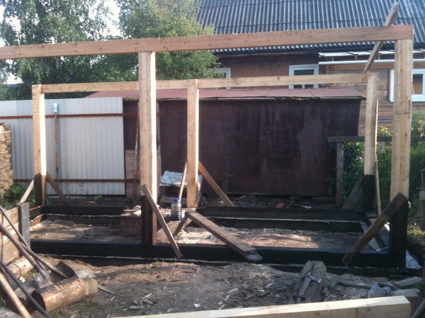 Установка вертикальных стоек. Стойки тоже обрабатывались отработкой, но только снизу.