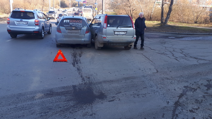 Началась эта грустная история днём 17 октября, я спешил конечно на очередной вызов, но ехал с разрешенной скоростью. Впереди зелёный светофор, моя полоса абсолютно свободно и буквально в 10 метрах от меня, появляется это чудо на X TRAIL и встаёт перегородив дорогу. Полоса слева от меня забита, там на светофор очередь. Бордюрка справа высоковата, да и не успел бы среагировать там еще и дорогу посыпали гравием, с утра снежок прошёл. Удар, дым от подушек, всё шипит пищит... Вспоминать не очень приятно.