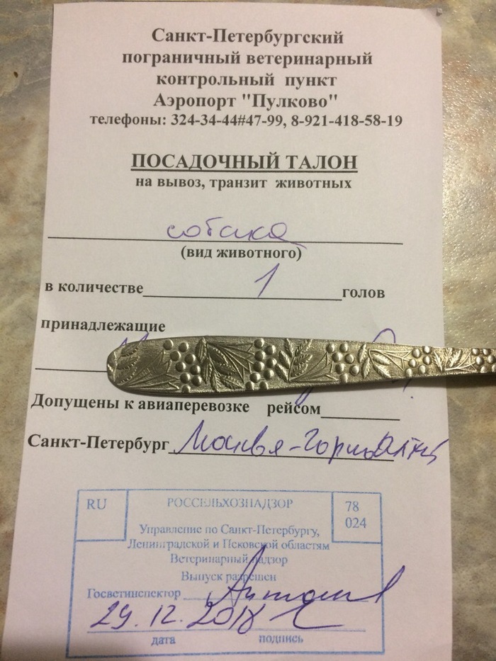 Так же мне переслали фото с печатью аэропорта что ветконтроль собака прошла и к перевозке допущена