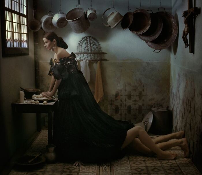 Эухенио Рекуэнко известен своим уникальным стилем, который сочетает элементы барокко, готики, классического искусства и кинематографического языка. Его работы — это тщательно продуманные сцены, полные аллюзий на историю искусства, мифологию и литературу. Он часто экспериментирует с декорациями, создавая масштабные инсталляции, которые выглядят как сцены из фильмов.