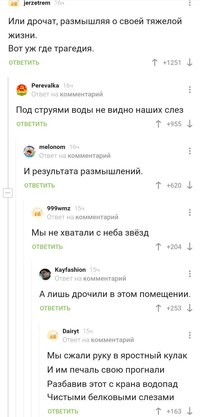 1 A2233 5 лет назад Баяны Мужская поэзия #comment_161265222 Показать полностью 3 Комментарии на Пикабу Пикабу Длиннопост Ещё 0
