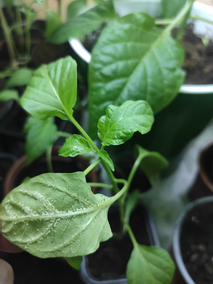 На халапеньо новая хрень напала. Причем некоторые стартанули прямо нормально, а некоторые никак расти не хотят. И на нескольких какие-то белые наросты на обратной стороне листа. Не ползают и не двигаются. Может кто-то подсказать что это и как бороться?