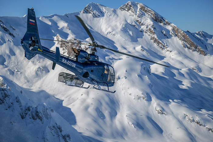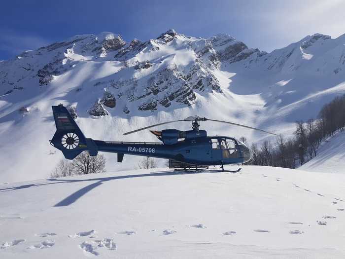 "Это было начало апреля, раннее утро. Синий вертолет Gazelle ждал нас на базе в Абхазии у самой границы с Россией. В состав нашей группы входили - пилот, гид и 3 клиента. Погода была потрясающая. Пилот и гид знают свое дело, они тщательно следят за погодой перед каждым полетом, за скоростью ветра, температурным градиентом и многими данными погодных условий предыдущих дней, которые отвечают за безопасность хели путешествия.