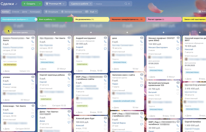 В компании был розничный отдел из 3 менеджеров. Формально всё работало: заявки приходили с Авито, SEO, Яндекс.Директа и сайта. Но реальных продаж это не приносило. В CRM много «мертвых» лидов и сделок с просроченными задачами и незаполненной информацией.
