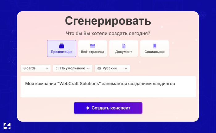 Нейросеть автоматически сгенерирует текст, изображения и структуру презентации