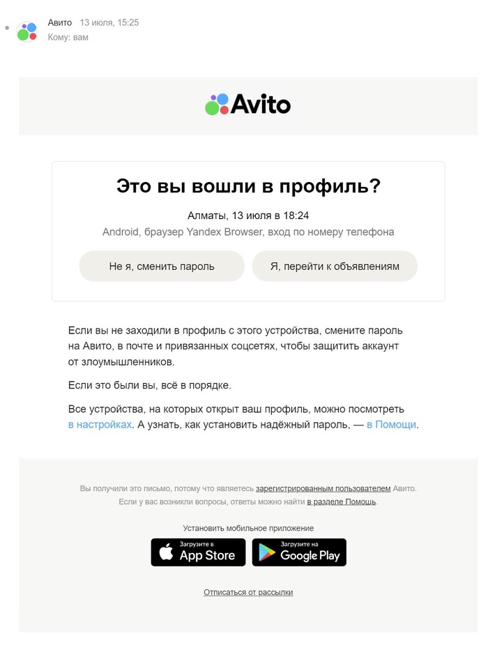 Я давно пользуюсь avito, продаю ком железо и прочее. Отправил покупатели посылку, стоимостью 19 000 рублей, нечего не предвещало беды. В день когда посылка должна была поступить на пункт выдачи, мне на почту пришло сообщение, что в мой аккаунт добавлен номер телефона. Я знатно офигел, благо телефон был в руках, номер этот я удалил и сменил пароль в приложении. Через 2 часа история повторилась, я тоже успел номер удалить и сменил пароль. Сразу отписался в поддержку авито, думал это поможет, какой я наивный)