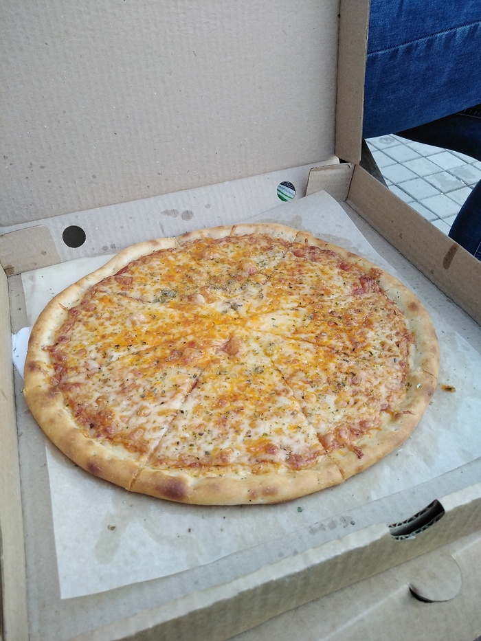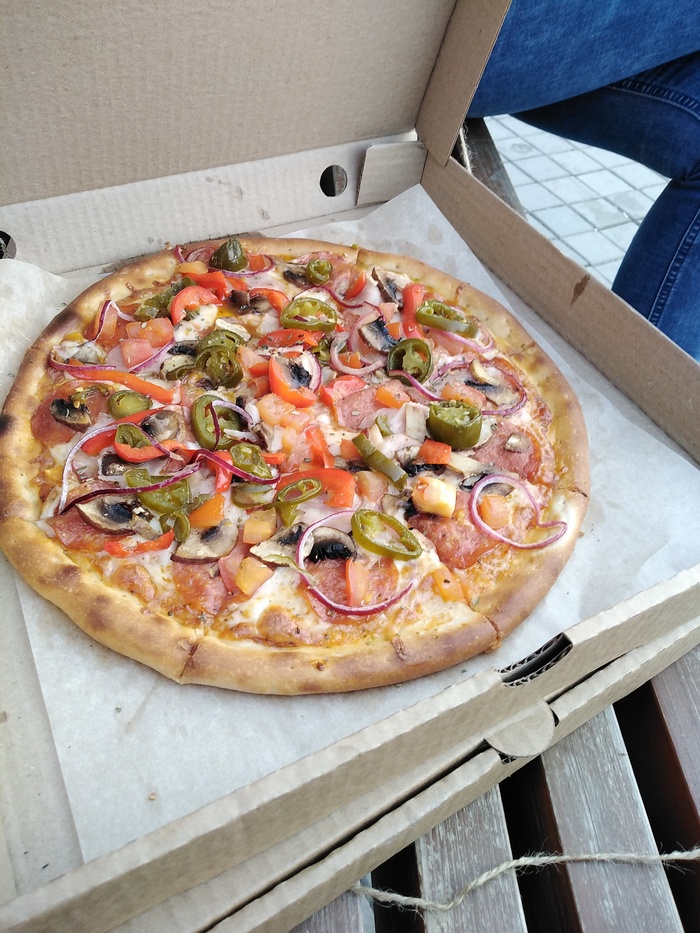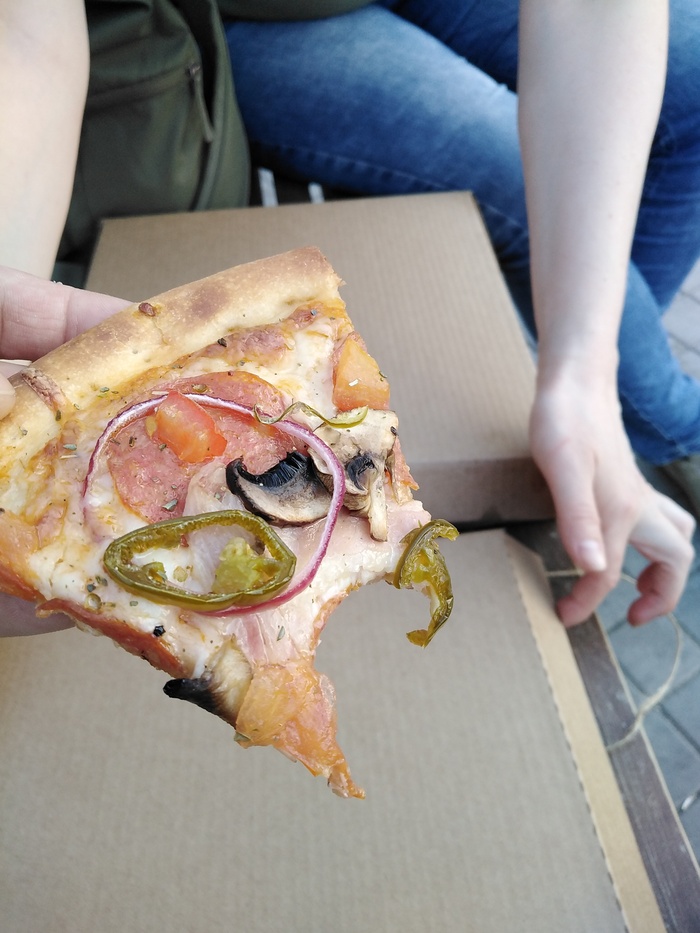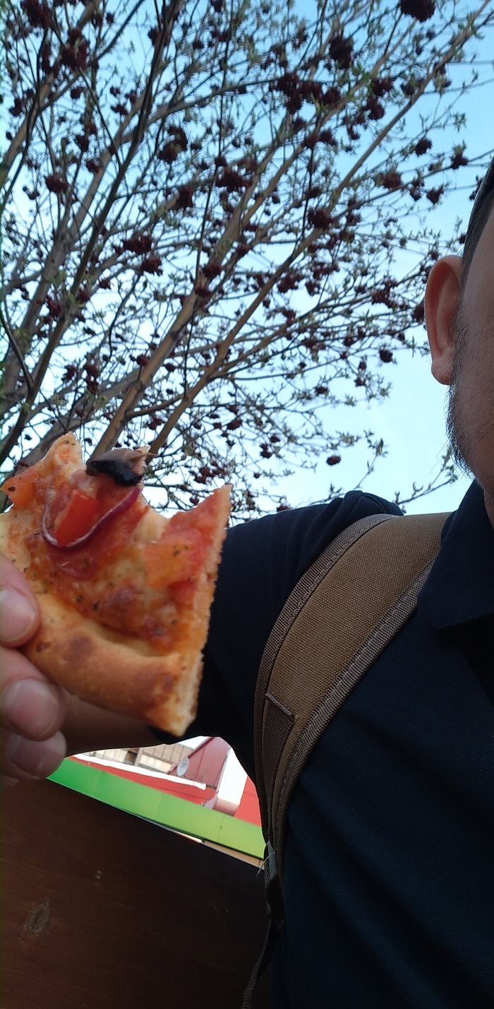Третье: Сегодня вспомнил, что у меня ещё десять пицц в запасе и погода хорошая. Погуляли с женой по парку, зашли в уже знакомую пиццерию, забрали заказ и прям на лавке умяли его. И я скажу это прям вкусно и качественно.