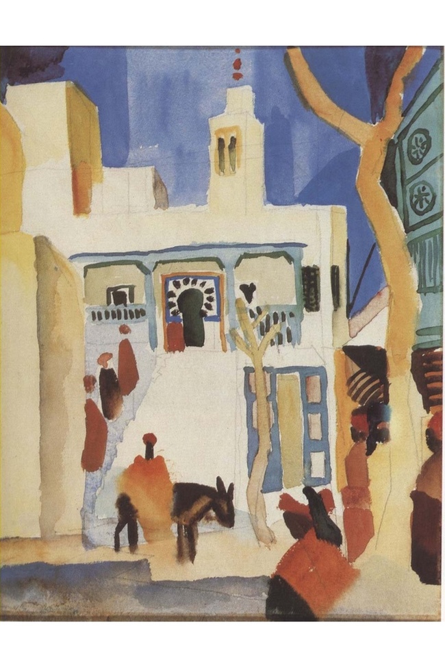 Вместе с Паулем Клее и школьным другом Клее, художником Луи Муайе, Макке весной 1914 года предпринял двухнедельную поездку в Тунис, в ходе которой появилось большое количество знаковых акварелей художника. Сделанные в поездке эскизы и фотографии послужили основой для написанных им в последующие месяцы картин («Тунисский пейзаж», «Пейзаж с коровами и верблюдом» и другие), однако полностью использовать этот материал Макке не успел.