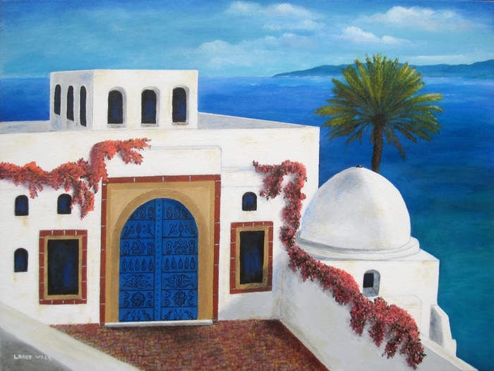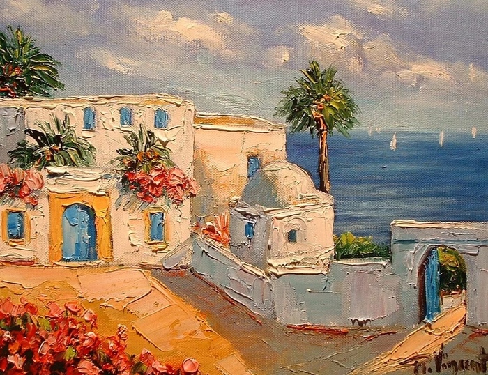 Бело-голубой город рисовали многие художники, вот некоторые полотна: