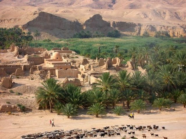 Эти города находятся в природных оазисах и окружены пальмовыми рощами, если так можно говорить. Пальм огромное количество, они культивируются, собирается урожай финиковых. Которые являются существенной экспортной статьёй Туниса.