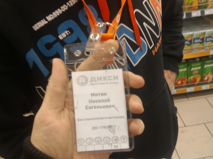 На кассе замечаю что-то с ценой не так. Сверяюсь. Ага! Самое время звать управляющего и возвращать своё. А вот и он, Митин Николай Евгеньевич: