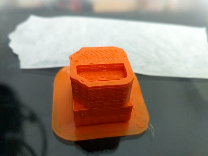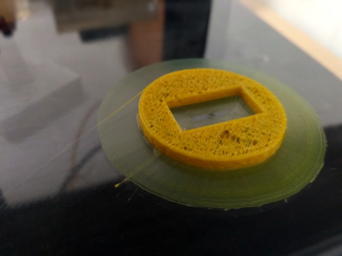 Дальше несколько фото и видео печати первой детальки для нашего принтера