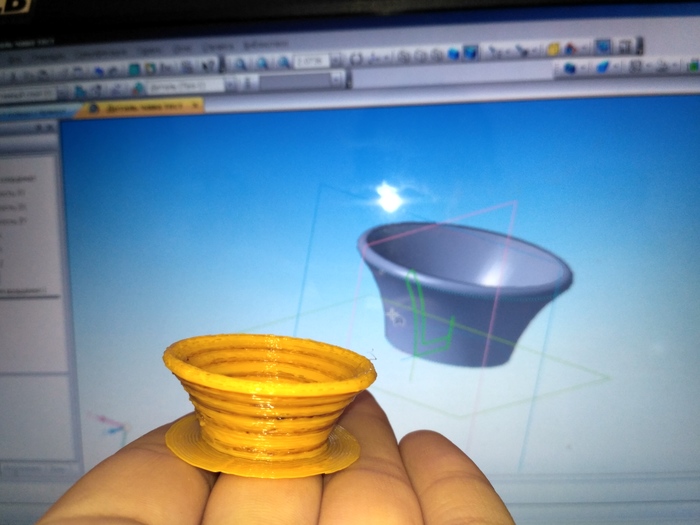 Ну и конечно фото первой распечатанной модели, это еще было на первой версии боудена, двигатель не справлялся с леской (слишком скользкая, все таки нейлон). Сейчас уже все нормально с боуденом.