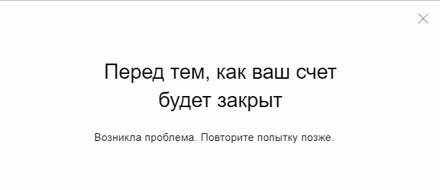 Но не тут то было. При попытке закрытия через сайт система мне выдавала сообщение