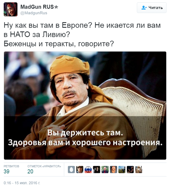 1029 ASer0806 Вы держитесь там 9 лет назад Показать полностью 1 X (Twitter) Политика Теракт Ливия Муаммар Каддафи Найдено