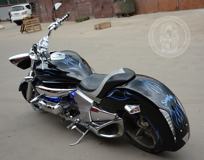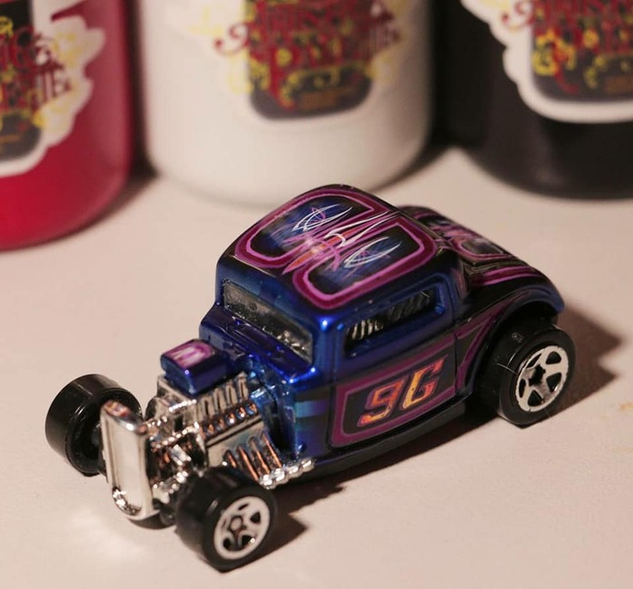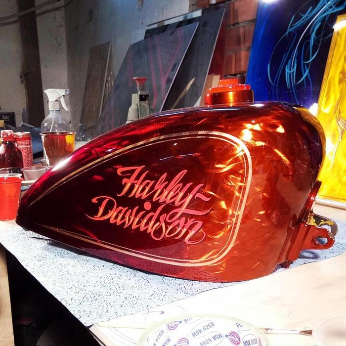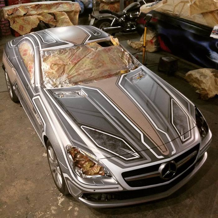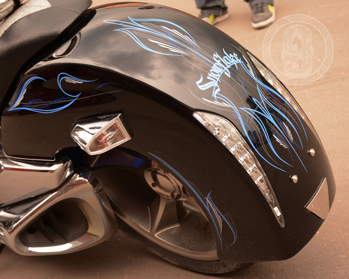 Всем привет! занимаясь аэрографией на автомобилях, я познакомился с таким направлением росписи как пинстрайпинг, это прикладное искусство длинных линий и замысловатых орнаментов. Графика наносится с помощью мечеобразных кистей (sword) Мне очень понравился подход к форме авто в этом направлении, и с с тех пор кисть держу в руках каждый день).