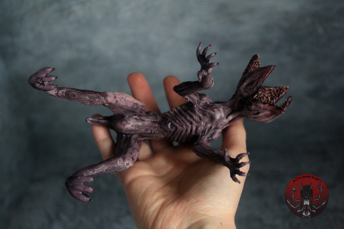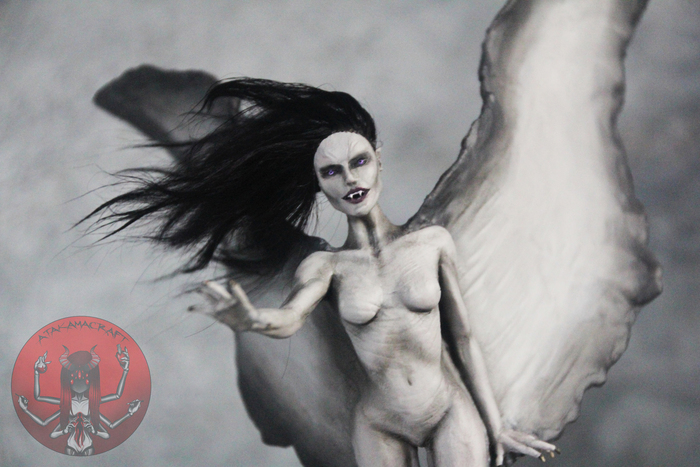 высота без учёта рогов 25см, плечи подвижные, использовала материалы: металл.каркас, термопласт, бархатный пластик, полимерная глина, проволока, акрил, защитные лаки