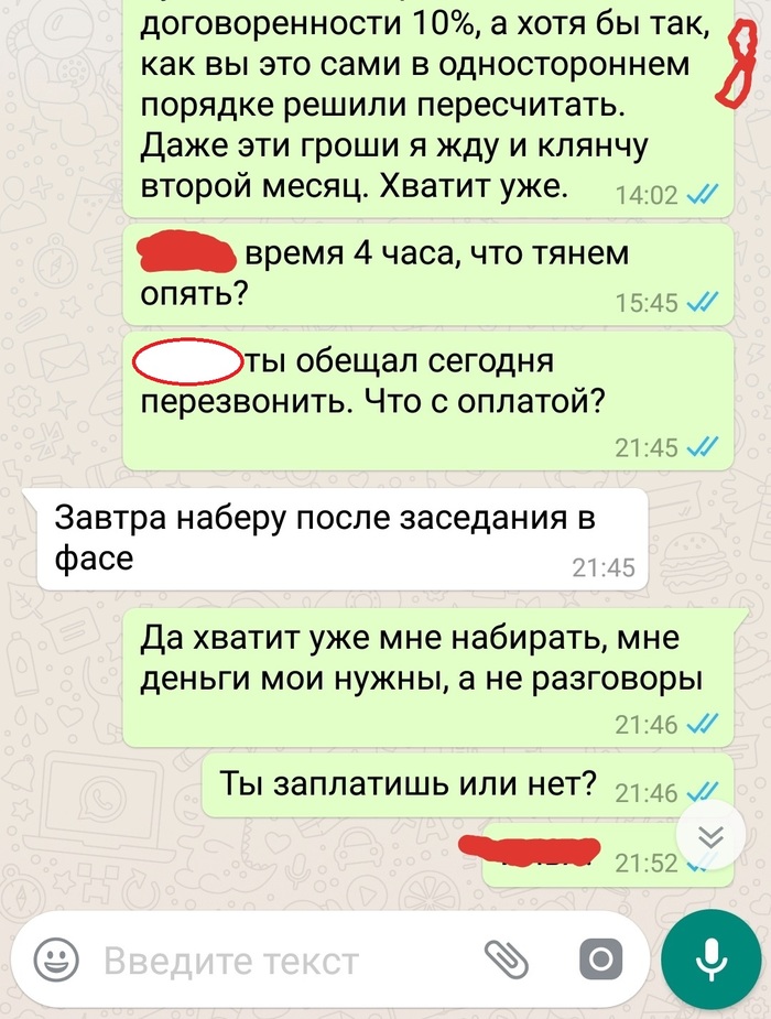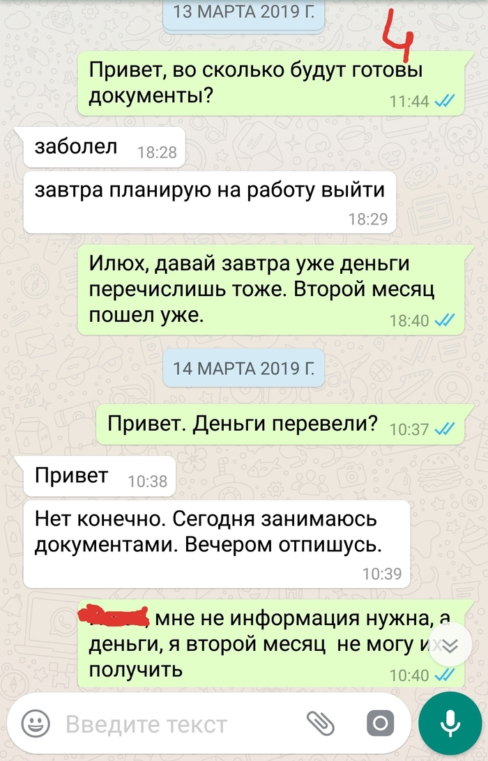 - Переписка в WattsApp с генеральным и коллегами(в т.ч. со сканами и проектами документов)