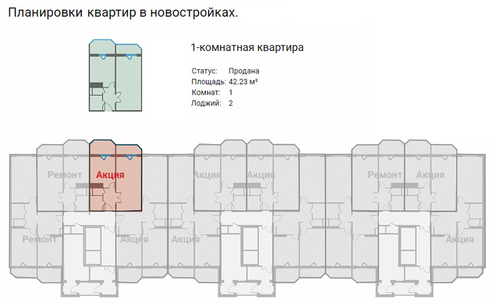 Мною была куплена 1 ком. квартира общей площадью 42,23 кв.м.