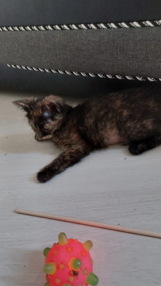 Троих котят забрала та девушка. Одного мальчика она оставила себе, другого отдала своей маме, а за крошкой-красавицей доченькой Чернички приехали аж из другого города.