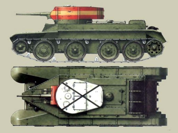 На рисунках четвёртом (выше) и пятом (ниже) представлен именно первой фазы, его отличительная черта - пулемёты по бокам башни. "Т37 второй фазы" был позже переименован в Т41, отличался от оригинала переработанной уменьшенной башней без боковых пулемётов и более мощной пушкой, а "Т37 третьей фазы" отличался от второго образца автоматом заряжания, образец которого даже не был построен.