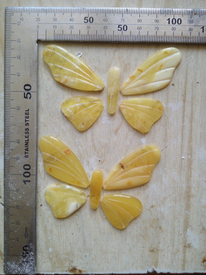Кусков подходящего размера не нашлось, пришлось склеивать из более мелких янтариков.