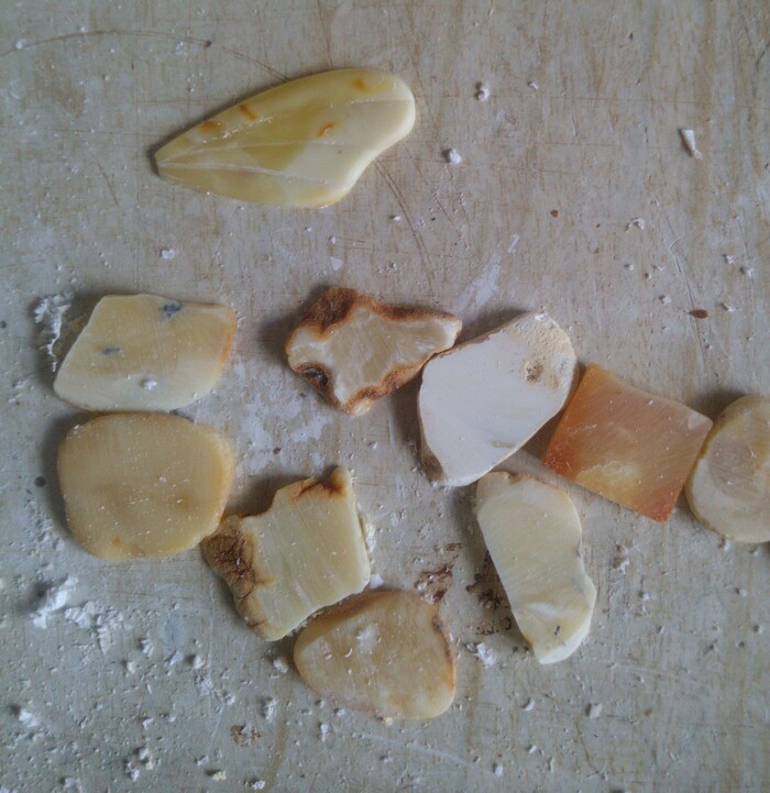 Для начала берем янтарь и снимаем корку, чтобы увидеть цвет: