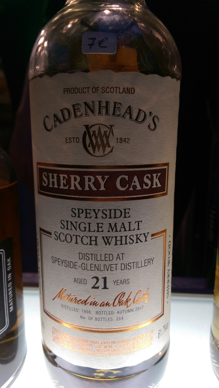 Дальше был стенд Cadenhead’s, я в их качестве уже уверена, поэтому пошла в гости. В гостях были исключительно бочковые крепости! Выбирала по названию и выбрала Glenlivet 21 y.o.