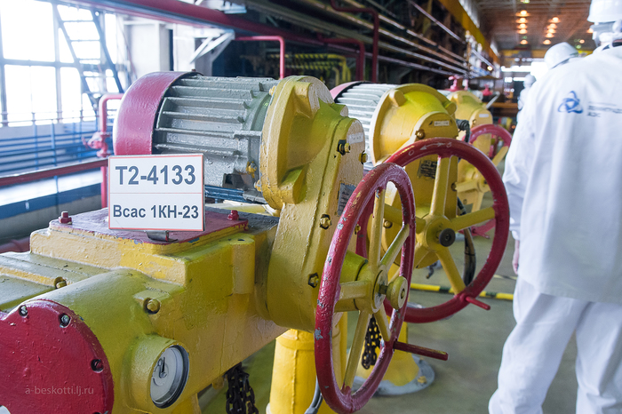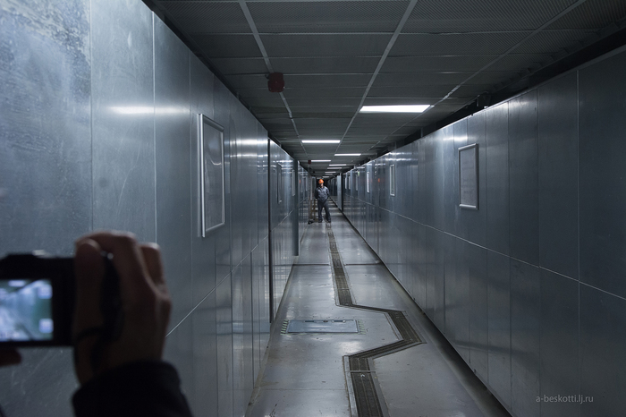 И повели темными коридорами…Все переходы в реакторный зал и к БЩУ только под землёй. Чтобы не переодеваться зимой, да. Бдительный сотрудник, не смотря на наше сопровождение сразу возмутился наличием у нас аппаратуры:”Вы на секретном объекте! Куда с фотоаппаратами”?