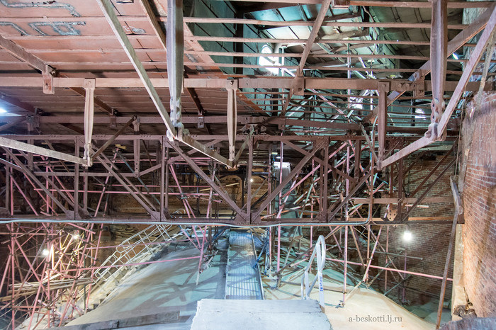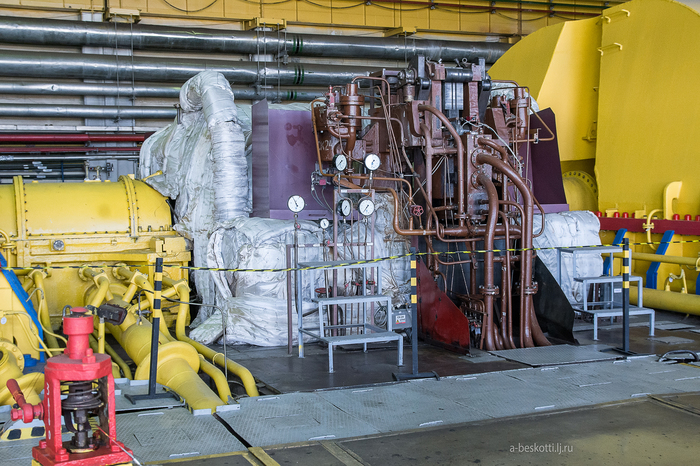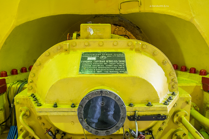 Турбина на ЛАЭС-2, кажется, ещё больше по габаритам! Но сейчас здесь идёт техобслуживание, планово-предупредительный ремонт (ППР). И тоже относительная тишина.